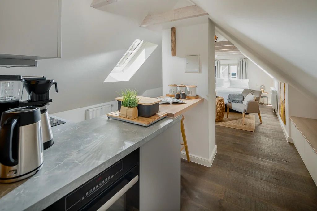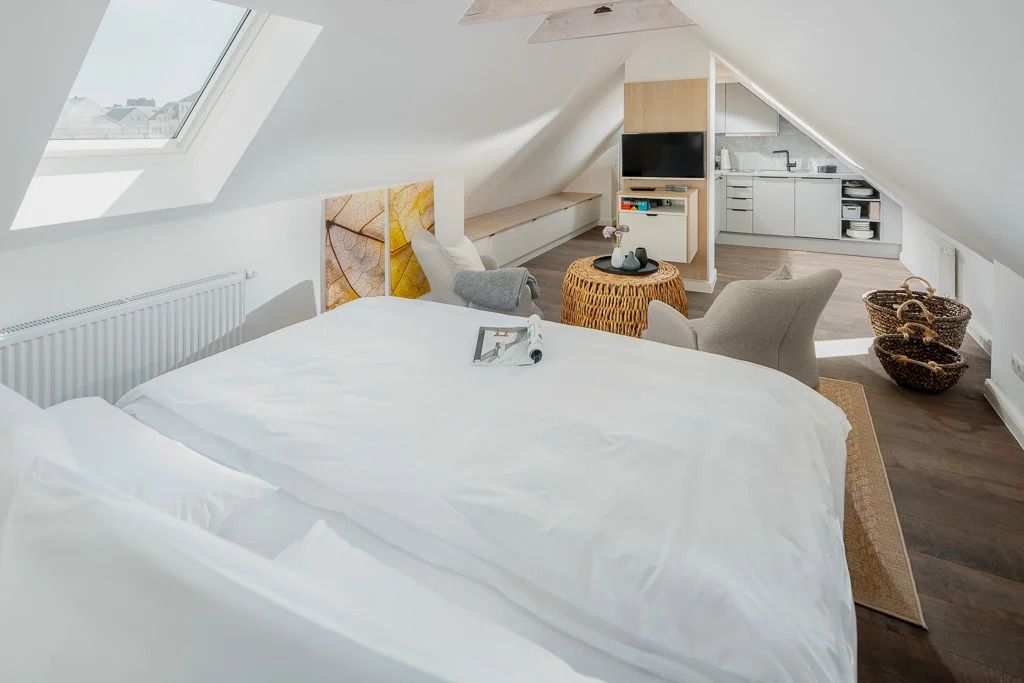 Die Pension Villa Alexander ist ein architektonisches Juwel aus der Bäderzeitepoche. Sie verfügt über insgesamt 6 Appartements, die alle hochwertig und liebevoll eingerichtet sind. Die Betten sind sehr geräumig und hochwertig und verfügen über einen überragenden Schlafkomfort. Alle elektronischen Geräte sind auf dem neuesten technischen Stand. Internet-Zugang über freies WLAN oder direkt über die großen Flat-Screen-TVs. Die Appartements verfügt über vollständig eingerichtete Küchenzeilen mit integriertem Geschirrspüler. Gemeinschaftsterrasse auf der Veranda.
